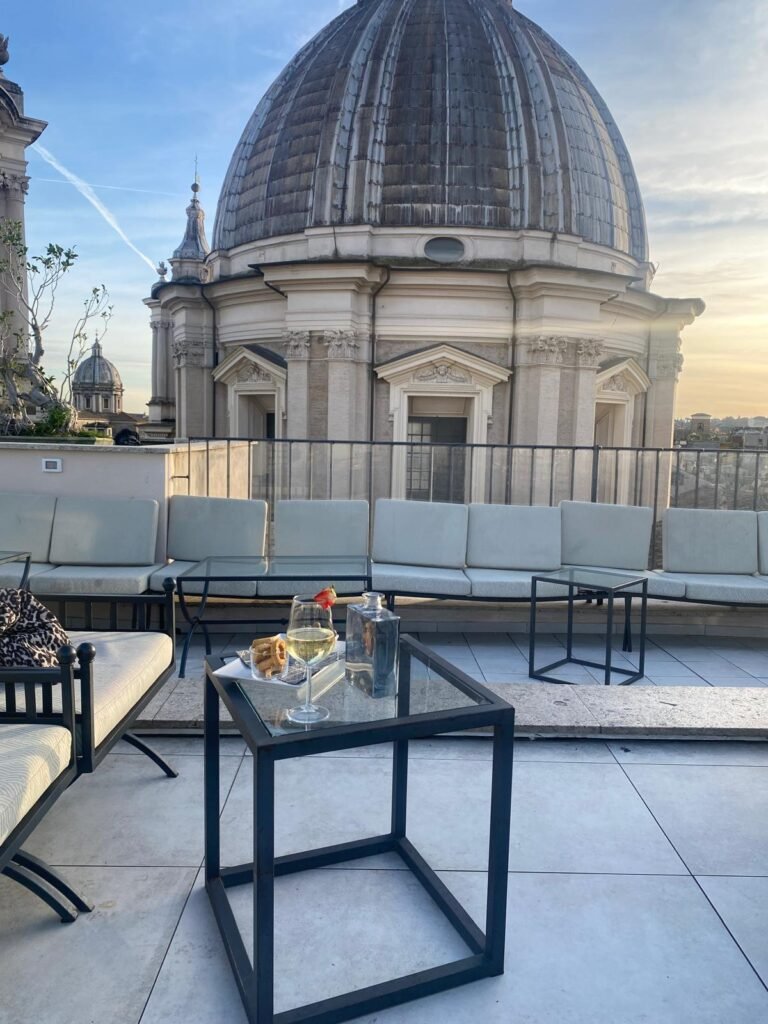 Perché mi piace: per l’aperitivo è pura magia romana. La vista su Roma dall’alto, le luci morbide e l’atmosfera scenografica trasformano subito il momento in qualcosa di speciale. È il posto giusto quando vuoi iniziare la serata con bellezza e stupore.